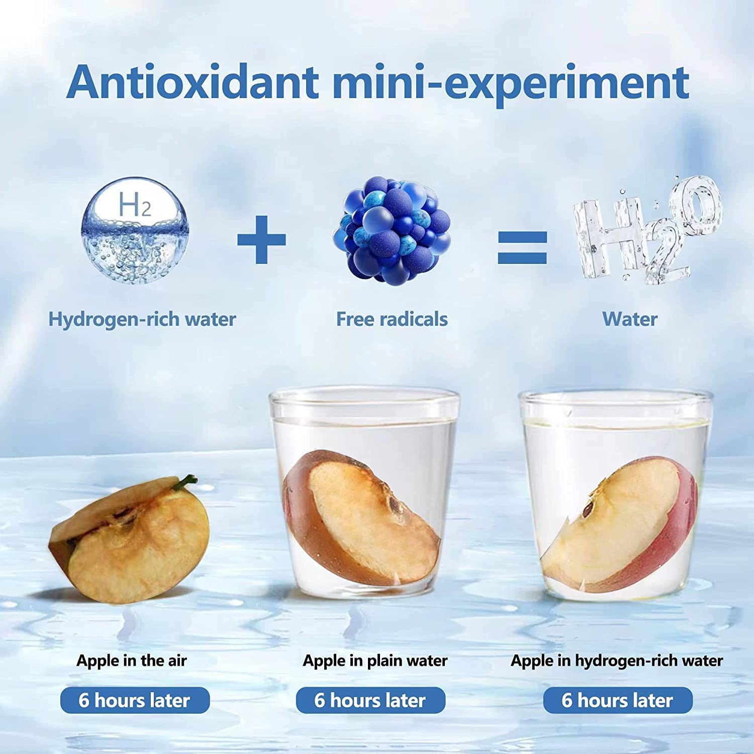 „Bár látni fogsz buborékokat a palackban, a víznek nincs szénsavas, ‘pezsgő’ íze, mint az üdítőknél. A hidrogénes víz íze könnyed, tiszta és friss – pont olyan, mint a prémium minőségű vízé, csak extra egészségügyi előnyökkel!”