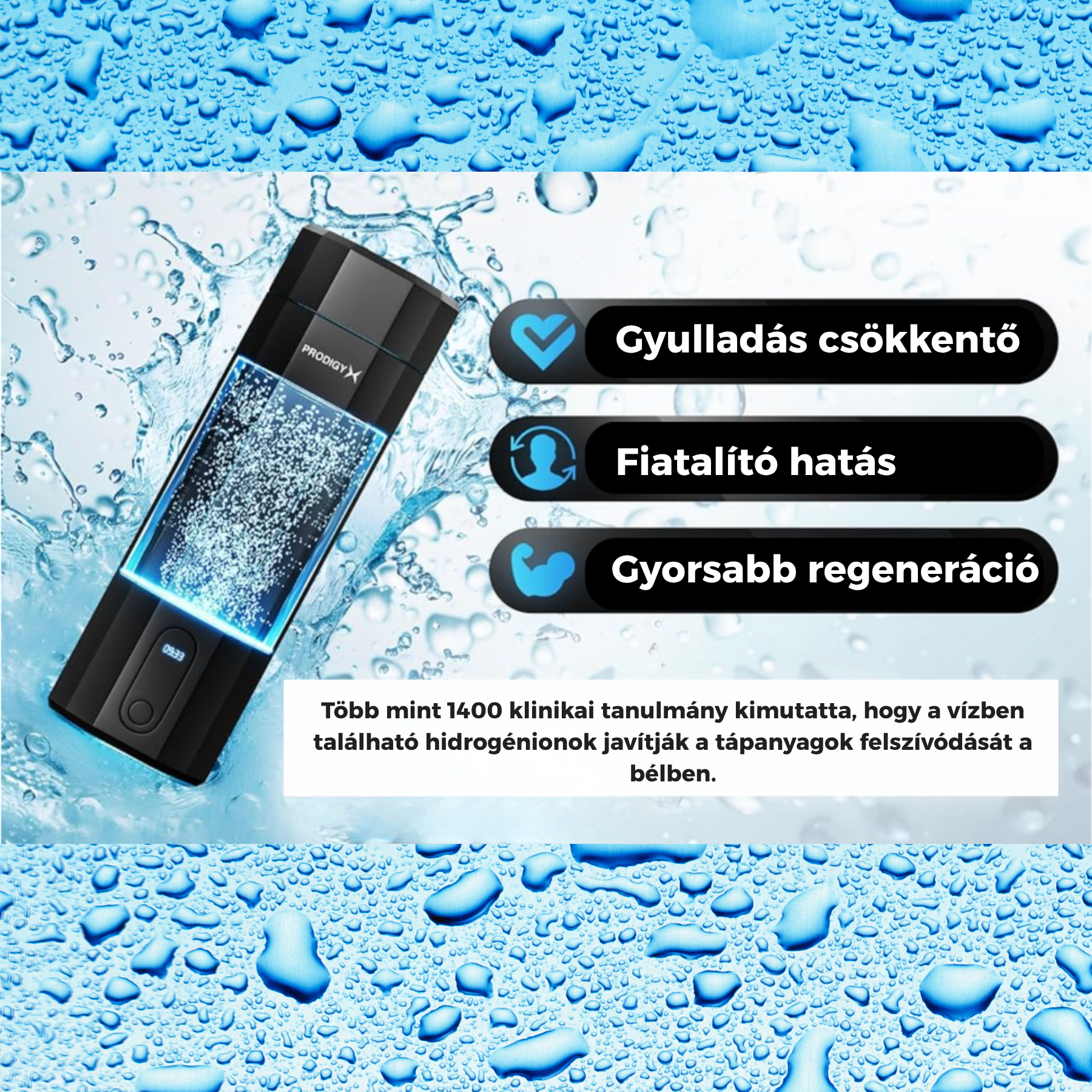 „Bár látni fogsz buborékokat a palackban, a víznek nincs szénsavas, ‘pezsgő’ íze, mint az üdítőknél. A hidrogénes víz íze könnyed, tiszta és friss – pont olyan, mint a prémium minőségű vízé, csak extra egészségügyi előnyökkel!”